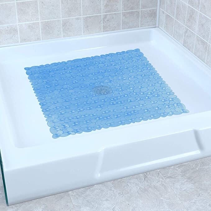 Duschmattan mäter 53 x 53 cm och är designad med 182 små sugkoppar som är sammanfogade så att det blir små hål mellan varje. Denna är gjord med syfte att ytvattnet från duschen ska kunna tränga bort och ner i avloppet, så att du står säkrare och tryggare.