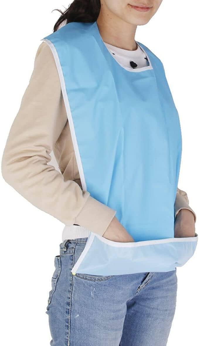 Den är designad med ett veck i botten, så att eventuell matrester inte faller på plagget. Den fästs enkelt och enkelt i nacken med hjälp av kardborreband.