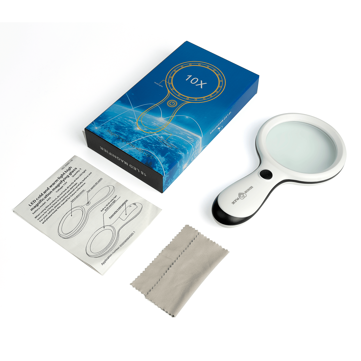 Kraftigt förstoringsglas med 10x förstoring, 18 LED-lampor och tre olika ljuslägen
