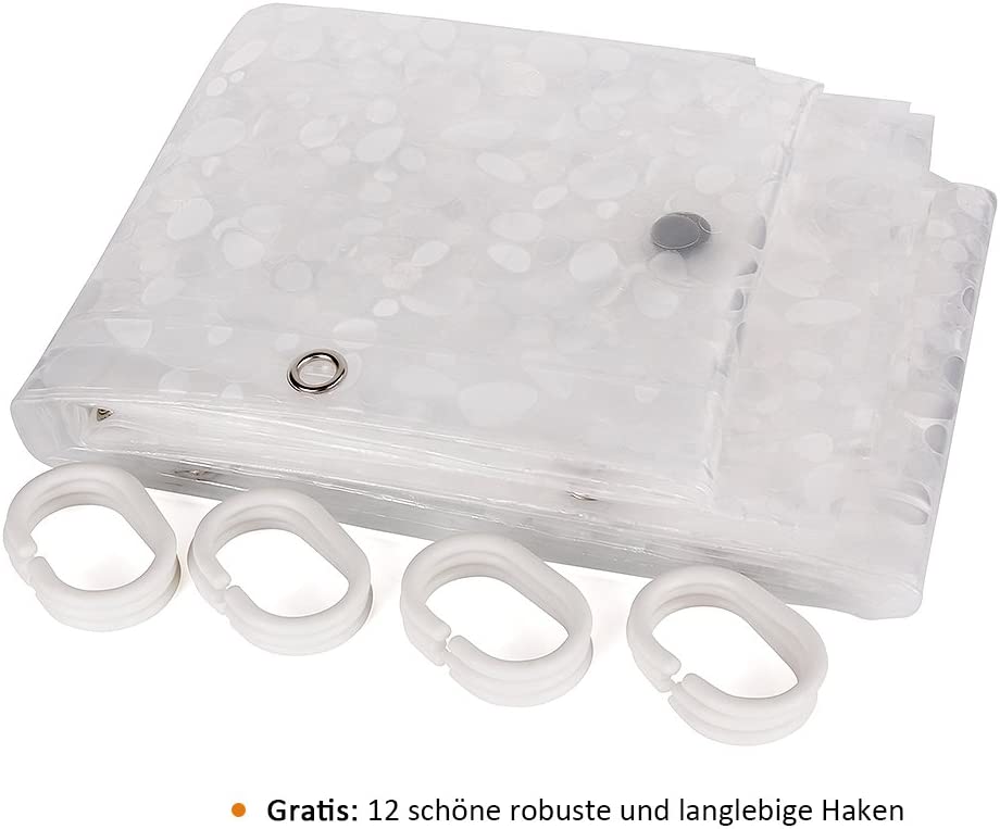 12 duschdraperiringar i plast ingår. Snabb att installera.