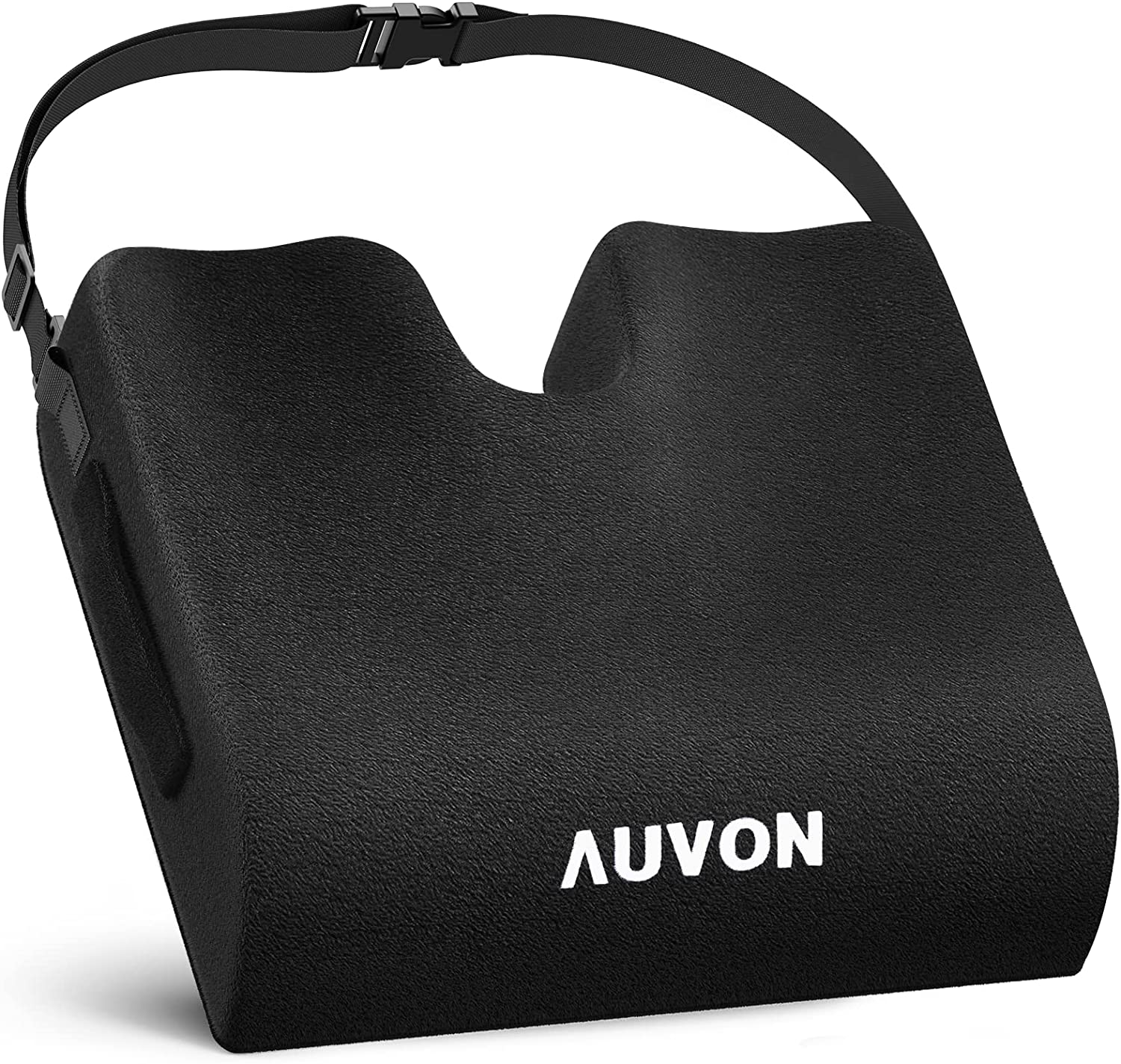 Denna vackra sittdyna är designad med en anatomisk utskärning för att avlasta svanskotan och ryggraden. Dynan kan fästas på din rullstol, bilbarnstol, köksstol etc. med en avtagbar Velkro-rem. Undersidan är försedd med halkskydd.