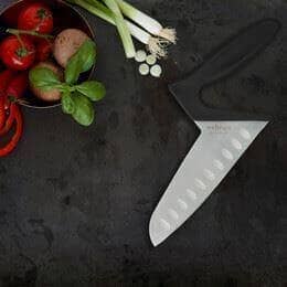 Grönsakskniv - gör det lättare att hacka och skiva. Vår ergonomiska Webequ grönsakskniv säkerställer exakt hackning och skivning, och den unika slip-easy-funktionen gör att ingredienserna lättare glider av knivbladet. Alla webequs knivar har specialdesignade handtag som ger fantastisk stabilitet, kontroll och balans. Samtidigt använder du mindre kraft när du klipper och kan därför klippa mer utan att bli trött. Grönsakskniven är perfekt för alla som vill underlätta skärning och hackning och kan med fördel användas av personer som har ont och/eller nedsatt styrka i hand, arm eller axel. Bladlängd: 17,8 cm. Tål diskmaskin, men rekommenderas inte.