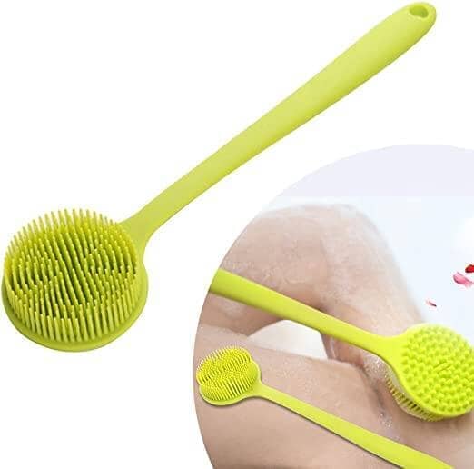 Dubbelfunktionell badborste - mjuk/fast silikon. Extra längd. 2 färger Neon grön Produkten är restnoterad och skickas så snart den finns i lager igen.
