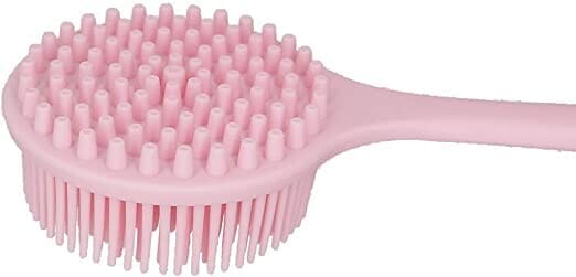 Dubbelfunktionell badborste - mjuk/fast silikon. Extra längd. 2 färger Rosa Produkten är restnoterad och skickas så snart den finns i lager igen.