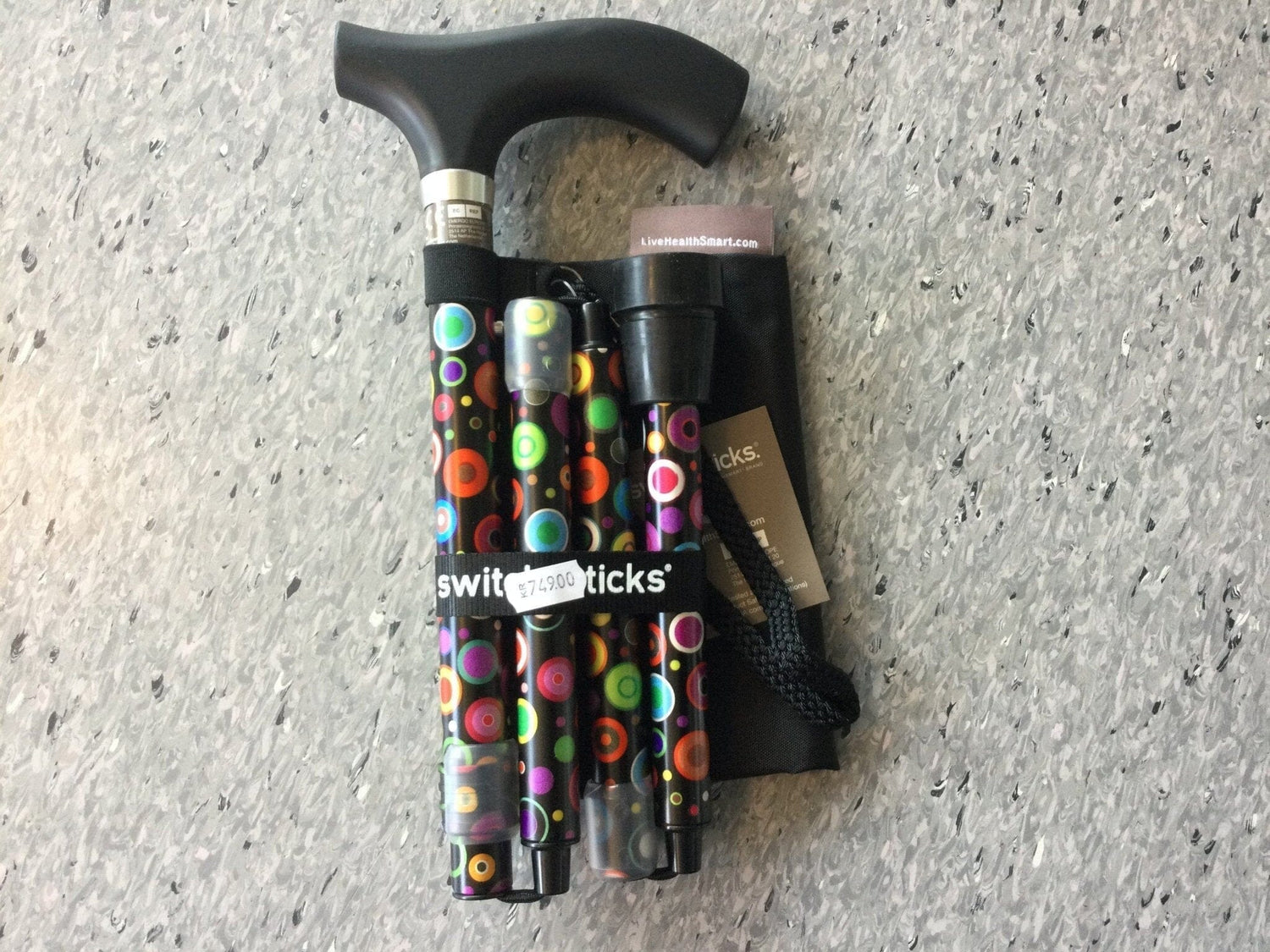 Smart hopfällbar lätt promenadkäpp i en rolig och ovanlig färg.