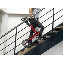 Dessutom är en vipppedal monterad på båda bakhjulen som gör att du enkelt kan gunga rollatorn över små dörrtrappor, trottoarkanter etc. genom att helt enkelt trampa på den.
