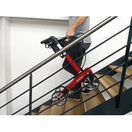Denna modell har en mycket speciell säkerhetsåtgärd i form av ett innovativt låssystem. När du viker ihop din rollator kan du mycket enkelt och säkert låsa ihop den med en röd knapp. Ett rött klicklåssystem finns upptill bredvid sitsen, som du enkelt trycker på för att öppna eller låsa ihop din rollator. När den röda knappen är aktiverad kan din rollator inte fällas ut, oavsett hur du väljer att hålla den. På så sätt undviker du att den plötsligt vecklas ut under transport, vilket ofta kan hända med andra modeller på marknaden som helt enkelt använder magneter för detta.