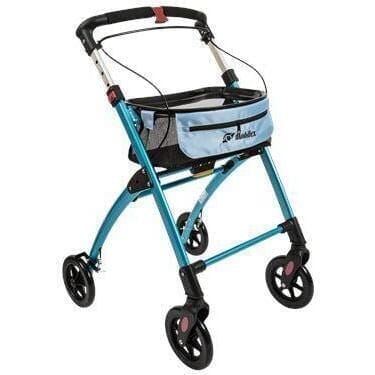 Rollatorn kommer med stora hjul, låsbara bromsar, en löstagbar bricka och en smart väska.