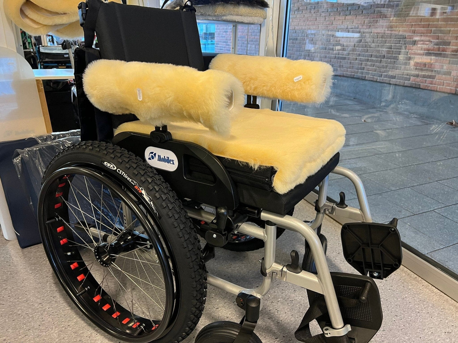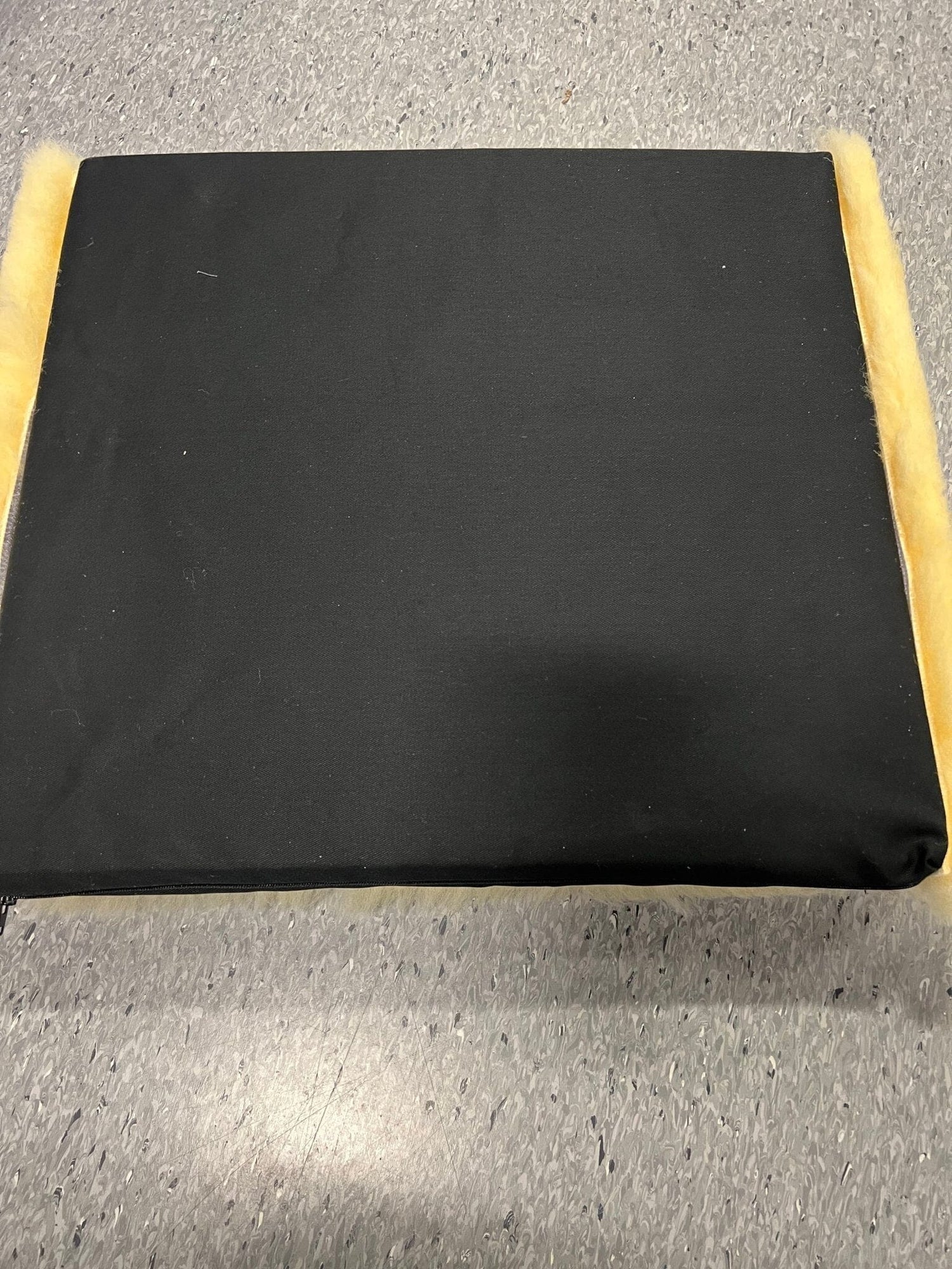 Lammskinnskudde för rullstol - Varm, tvättbar, mjuk och andas.