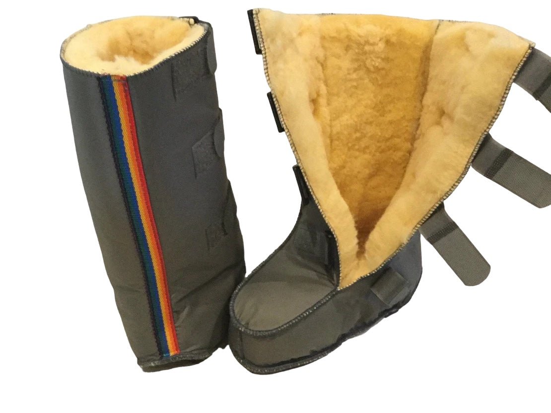 Upptäck komforten och kvaliteten hos våra mjuka varma lammskinnsstövlar i äkta medicinskt lammskinn! Dessa underbara grå rehabstövlar är designade för att möta alla dina behov och mer.